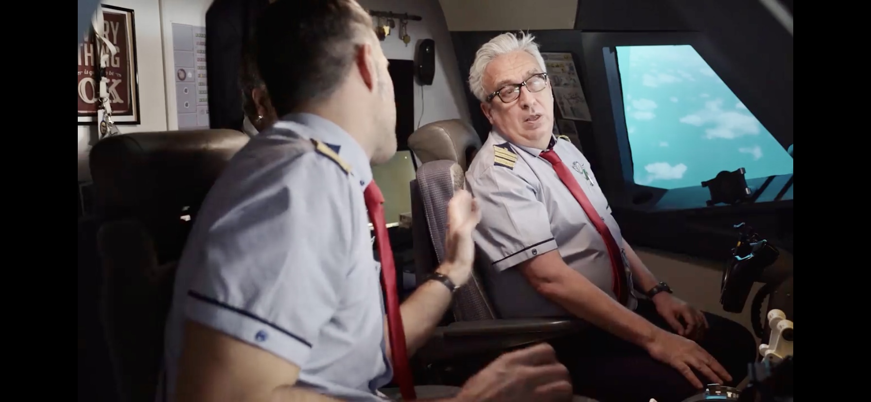 Al mando del avión está el comandante Leo (Leo Harlem) el piloto más experto que ha podido fichar la nueva línea aérea, con muchos años de vuelo y miles de anécdotas a sus espaldas. Un tipo dicharachero y resuelto capaz de pilotar cualquier avión en medio de una tormenta mientras cuenta chistes y prepara unas croquetas. Un héroe de la profesión, un mito de la aviación, un excelente anfitrión…